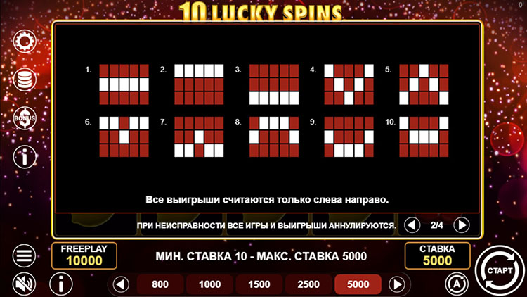 Таблица выплат 10 Lucky Spins