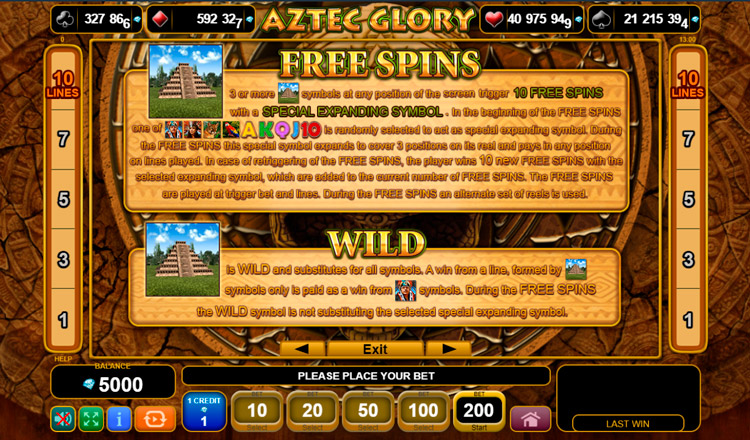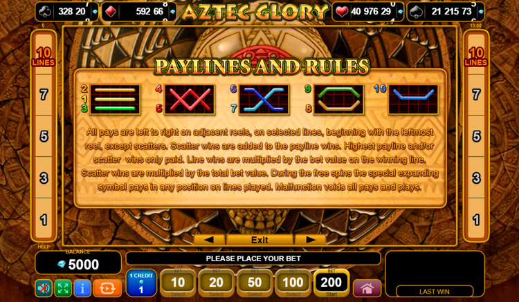 Таблица выплат Aztec Glory