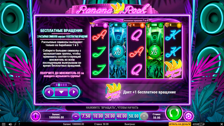 Таблица выплат Banana Rock