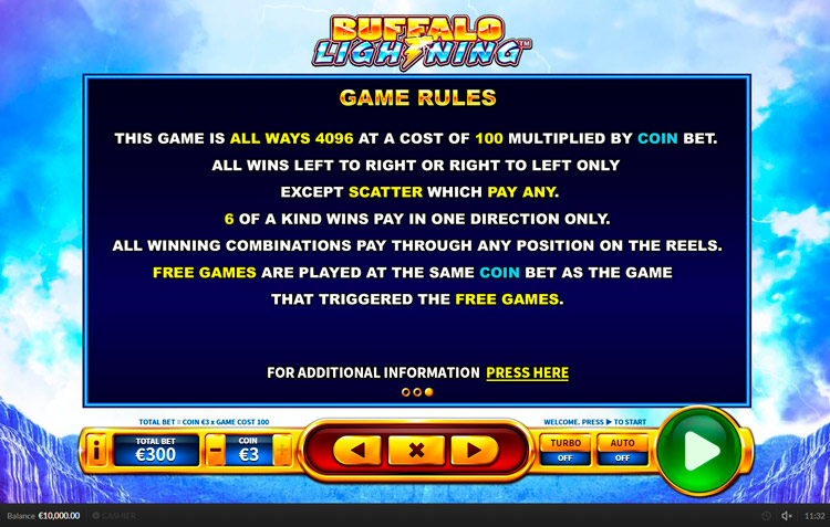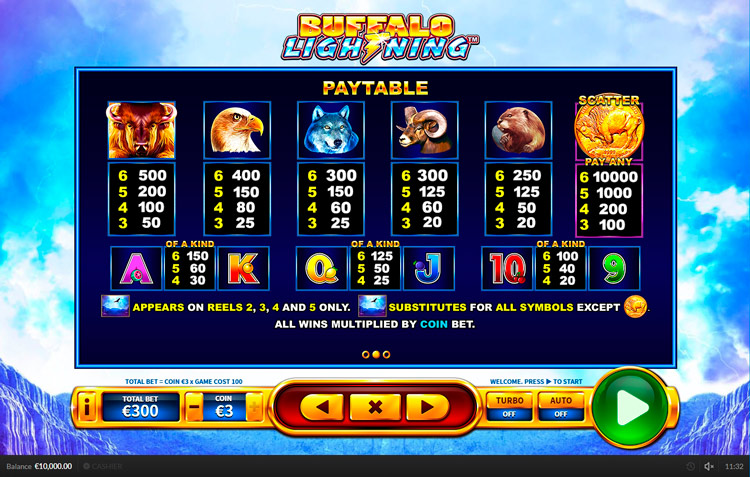 Таблица выплат Buffalo Lightning