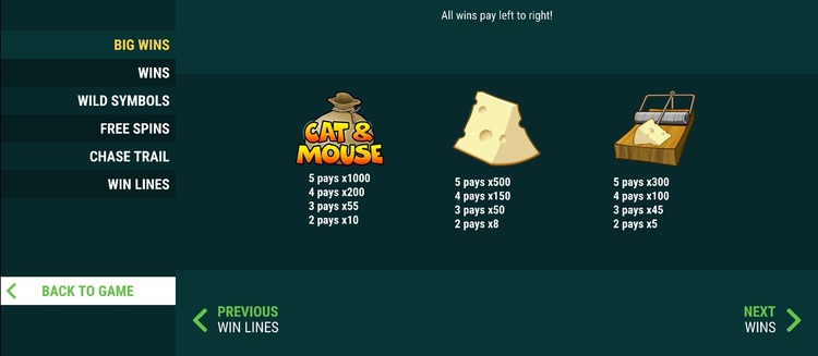 Таблица выплат Cat and Mouse