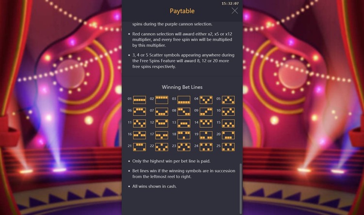 Таблица выплат Circus Delight