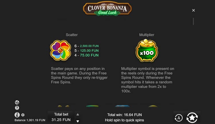 | Клевер (Scatter) | 75 | 125 | 2500 | - | - | - |