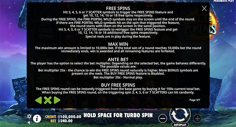 Таблица выплат Fire Portals