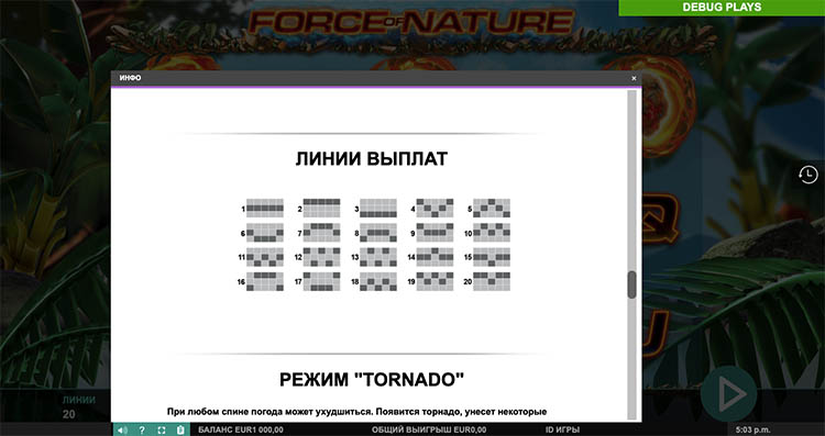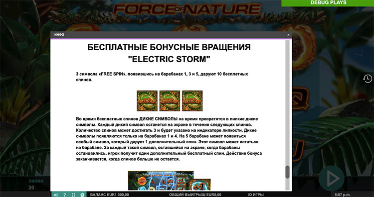 Таблица выплат Force of Nature
