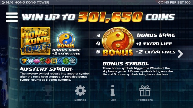 Таблица выплат Hong Kong Tower