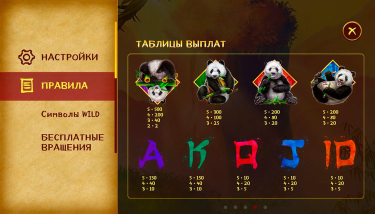 Таблица выплат Hungry Pandas