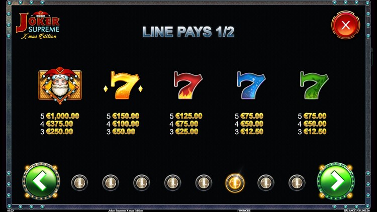 Таблица выплат Joker Supreme X-Mas Edition