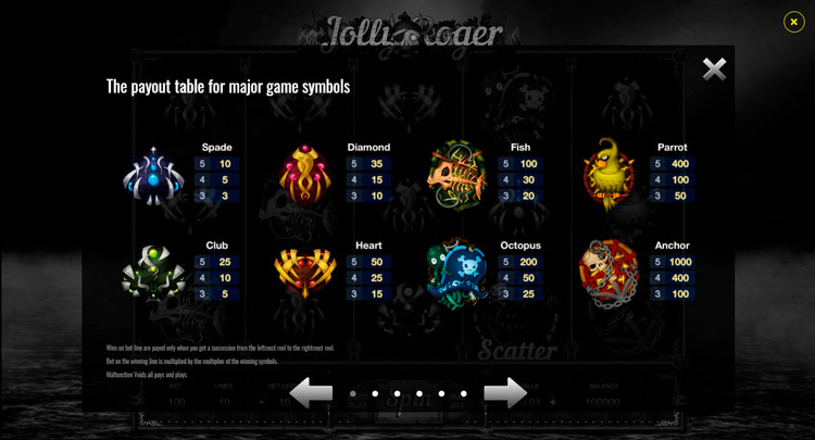Таблица выплат Jolly Roger