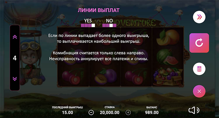 Таблица выплат Juice Adventure