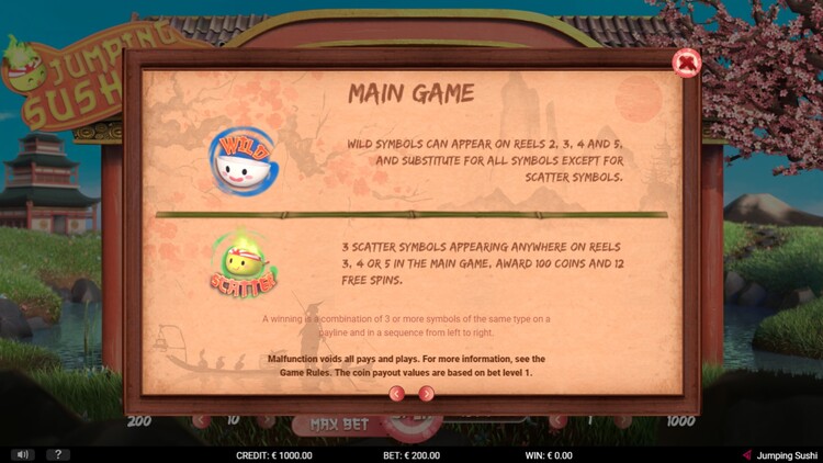 Таблица выплат Jumping Sushi