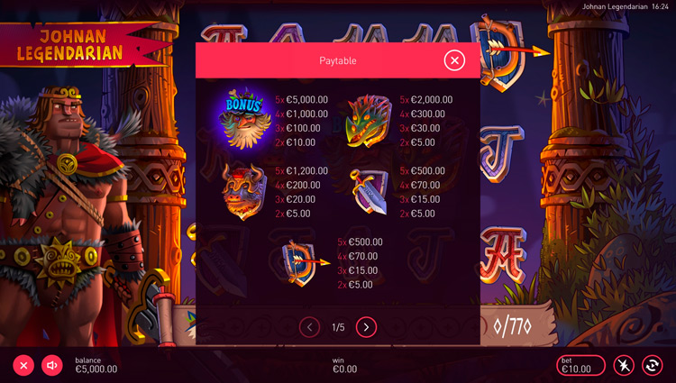 Таблица выплат Legends Johnan Legendarian