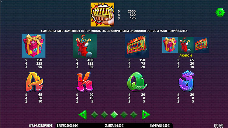 Таблица выплат Lil’ Santa