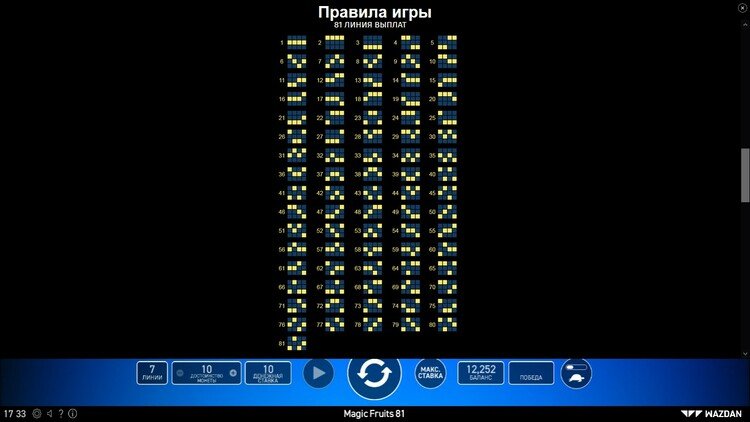Таблица выплат Magic Fruits 81