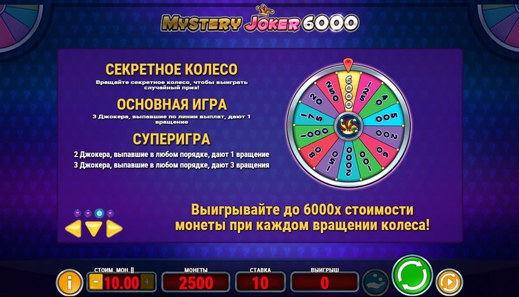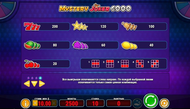 Таблица выплат Mystery Joker 6000