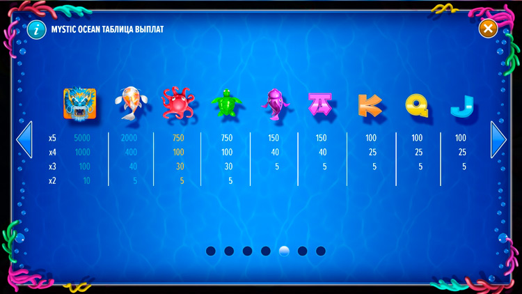 Таблица выплат Mystic Ocean