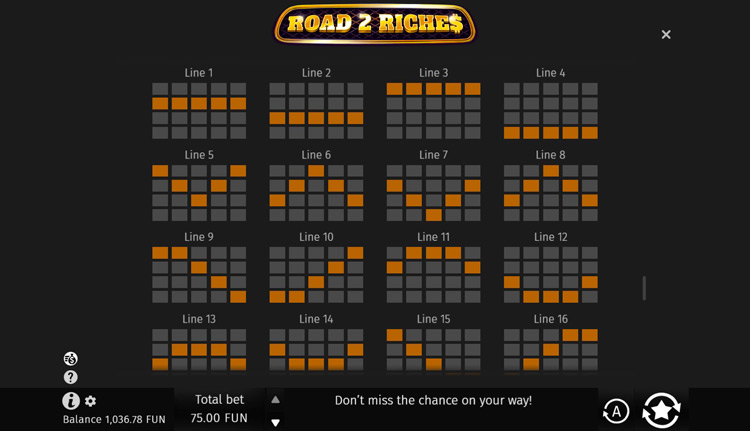 Таблица выплат Road 2 Riches
