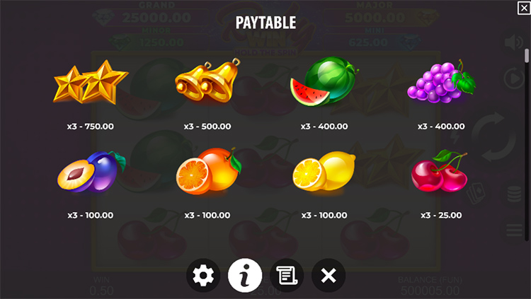 Таблица выплат Ruby Win: Hold The Spin