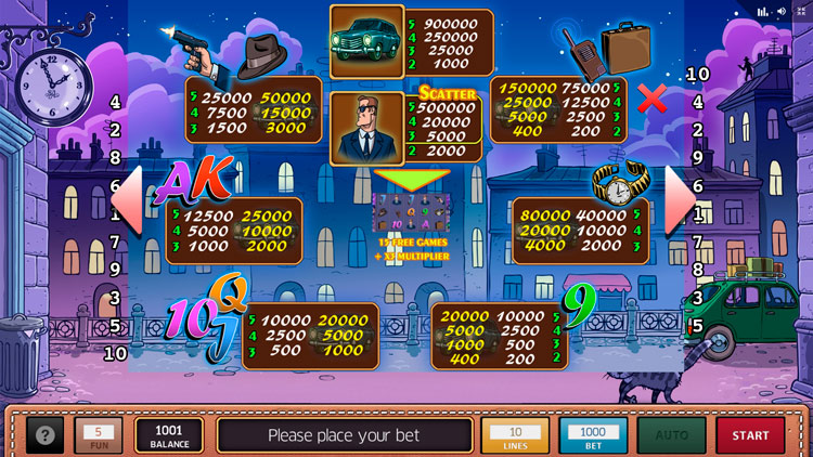 | Секретный агент (Scatter) | 2 000 | 5 000 | 20 000 | 500 000 |
