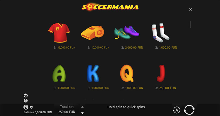 Таблица выплат Soccermania