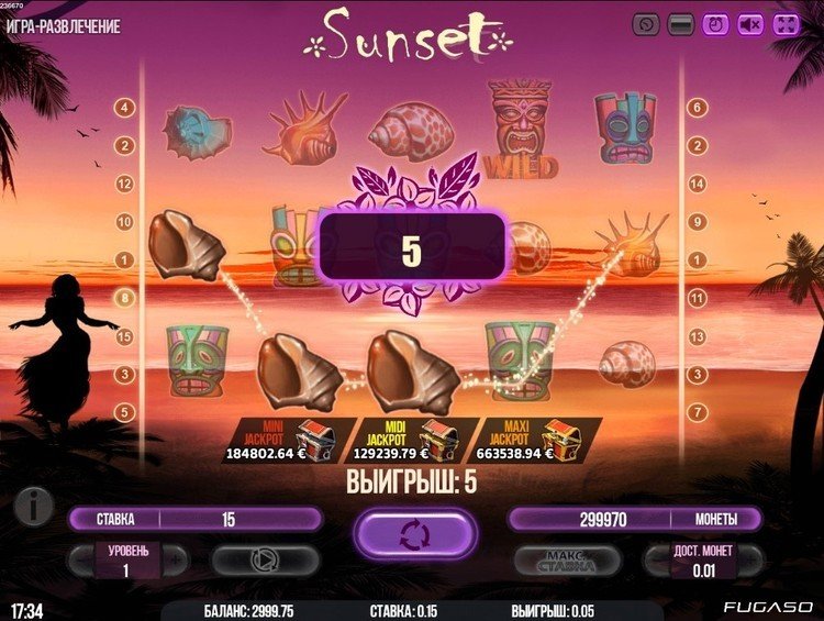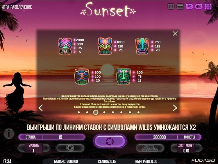 Таблица выплат Sunset