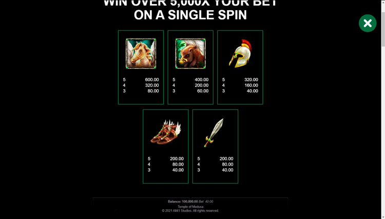 Таблица выплат Temple of Medusa