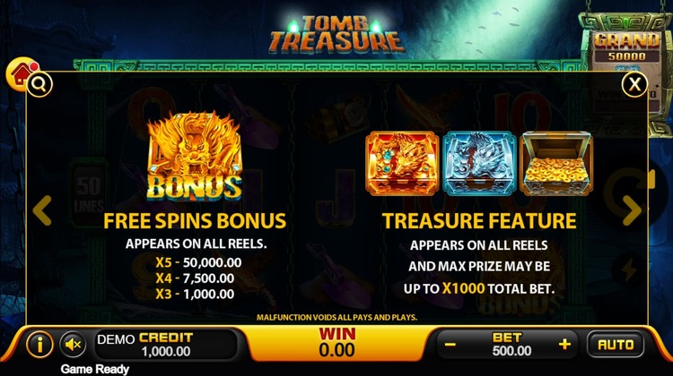 Таблица выплат Tomb Treasure