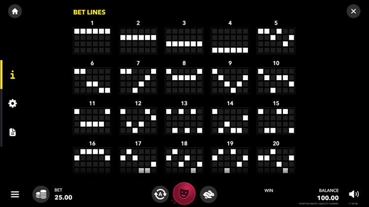 Таблица выплат Venetian Magic