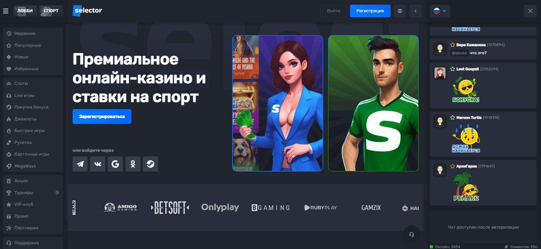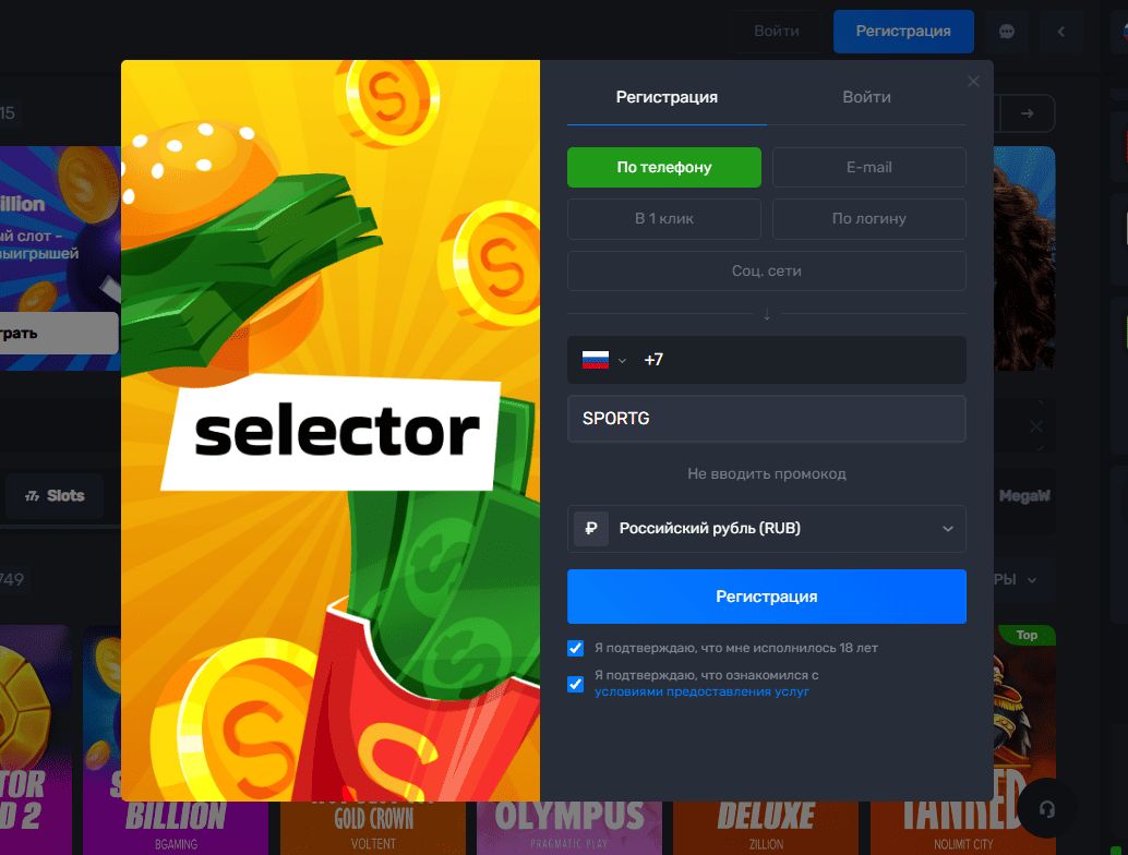 Процесс регистрации на Selector Casino построен максимально просто и интуитивно понятно: